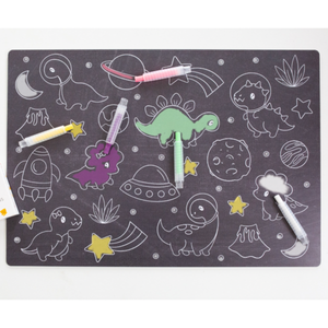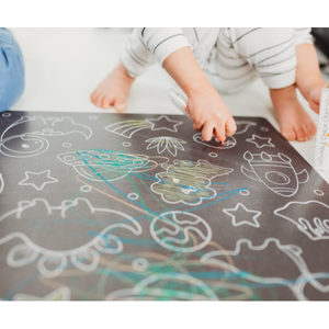 • It is possible you may find streaks from the chalk markers on your board or colouring mat if you leave the ink on for too long. We have found that orange + lemon essential oils work like magic to remove lines! If you do not have these try some rubbing alcohol or olive oil!