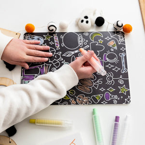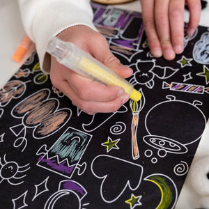 • It is possible you may find streaks from the chalk markers on your board or colouring mat if you leave the ink on for too long. We have found that orange + lemon essential oils work like magic to remove lines! If you do not have these try some rubbing alcohol or olive oil!