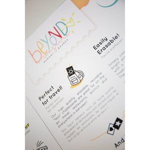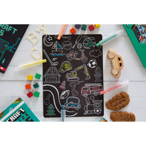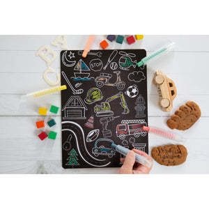• It is possible you may find streaks from the chalk markers on your board or colouring mat if you leave the ink on for too long. We have found that orange + lemon essential oils work like magic to remove lines! If you do not have these try some rubbing alcohol or olive oil!