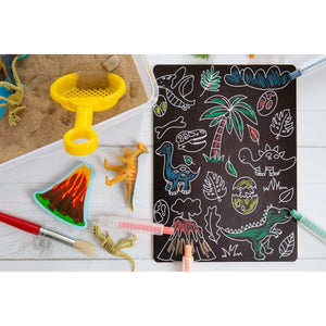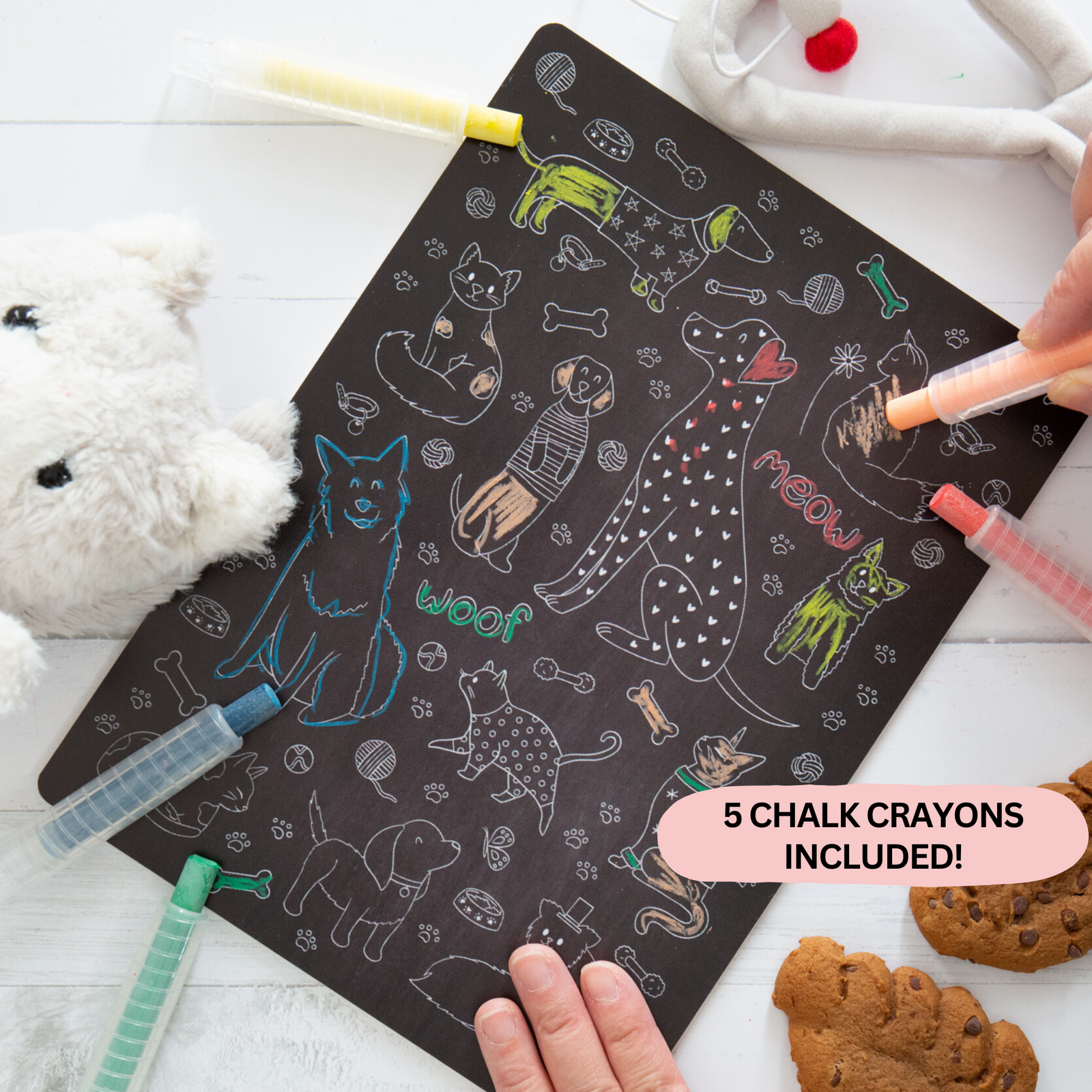 • It is possible you may find streaks from the chalk markers on your board or colouring mat if you leave the ink on for too long. We have found that orange + lemon essential oils work like magic to remove lines! If you do not have these try some rubbing alcohol or olive oil!