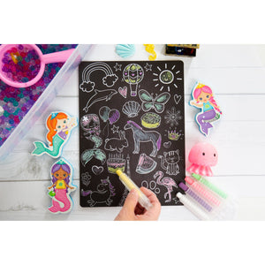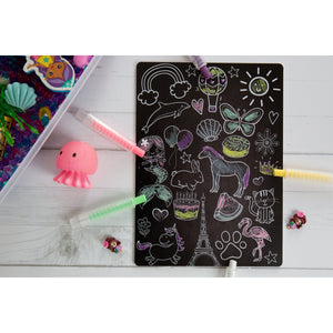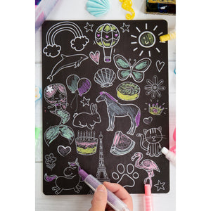 • It is possible you may find streaks from the chalk markers on your board or colouring mat if you leave the ink on for too long. We have found that orange + lemon essential oils work like magic to remove lines! If you do not have these try some rubbing alcohol or olive oil!