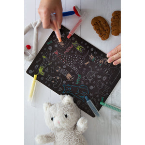 • It is possible you may find streaks from the chalk markers on your board or colouring mat if you leave the ink on for too long. We have found that orange + lemon essential oils work like magic to remove lines! If you do not have these try some rubbing alcohol or olive oil!