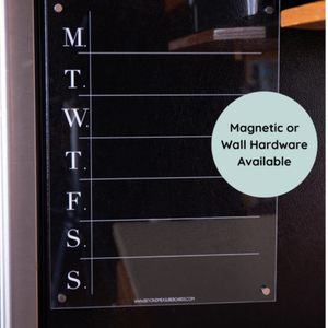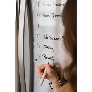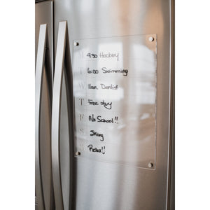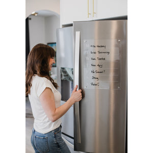 Please be aware that all fridges have varying magnetic capabilities, and while our acrylic fridge planners are designed to work with magnets, they may not adhere to certain surfaces, especially stainless steel. Many stainless steel fridges, in particular, are not compatible with magnets due to the type of coating or finish they have. We recommend verifying the magnet compatibility of your fridge before purchase.