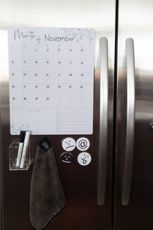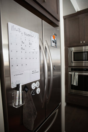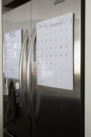 Start saving paper and use our dry erase board! A reusable calendar plus weekly board! Its perfection! These are a perfect fit on your pantry door, fridge or wall! Simply use with a dry erase marker or wet erase chalk marker!!