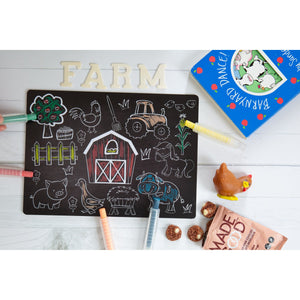 • It is possible you may find streaks from the chalk markers on your board or colouring mat if you leave the ink on for too long. We have found that orange + lemon essential oils work like magic to remove lines! If you do not have these try some rubbing alcohol or olive oil!