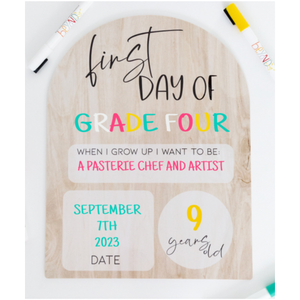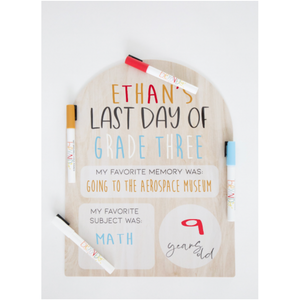 If you don't have time the morning of school to fill out the board with multiple children, another fun idea is to take the photo of them holding the blank board, then later fill in the information with an app such a Pic Monkey off your phone or computer!